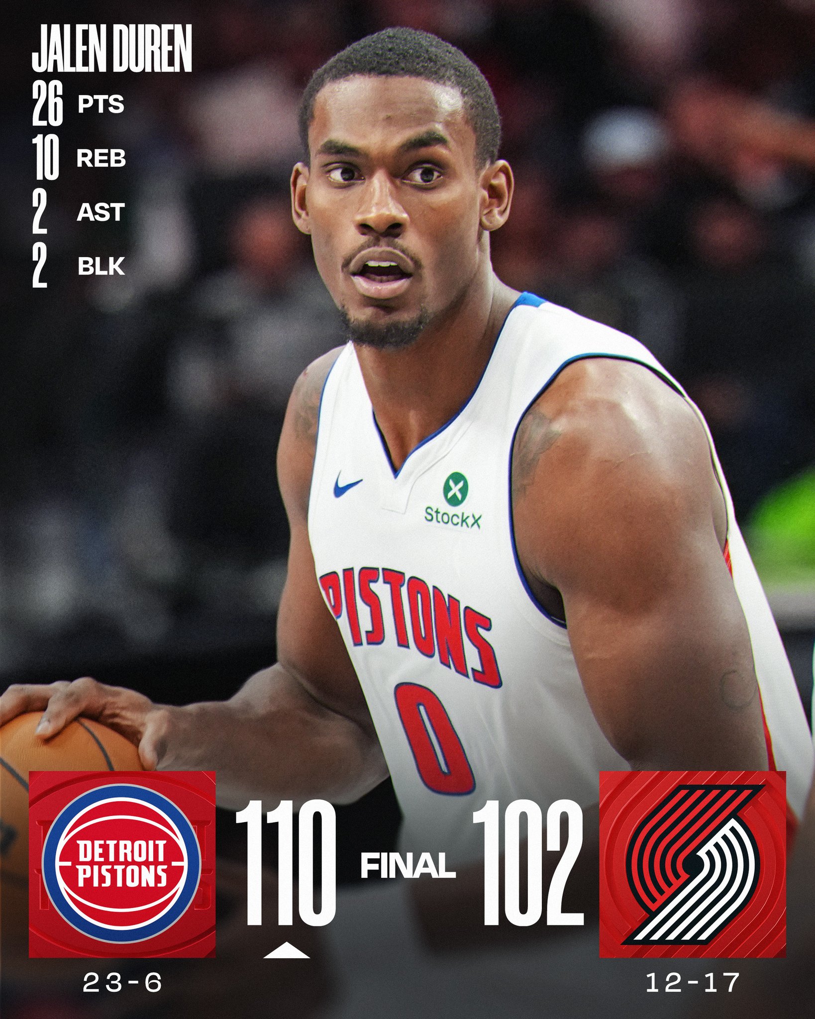 Jalen Duren dominates as the @DetroitPistons win in Portland!