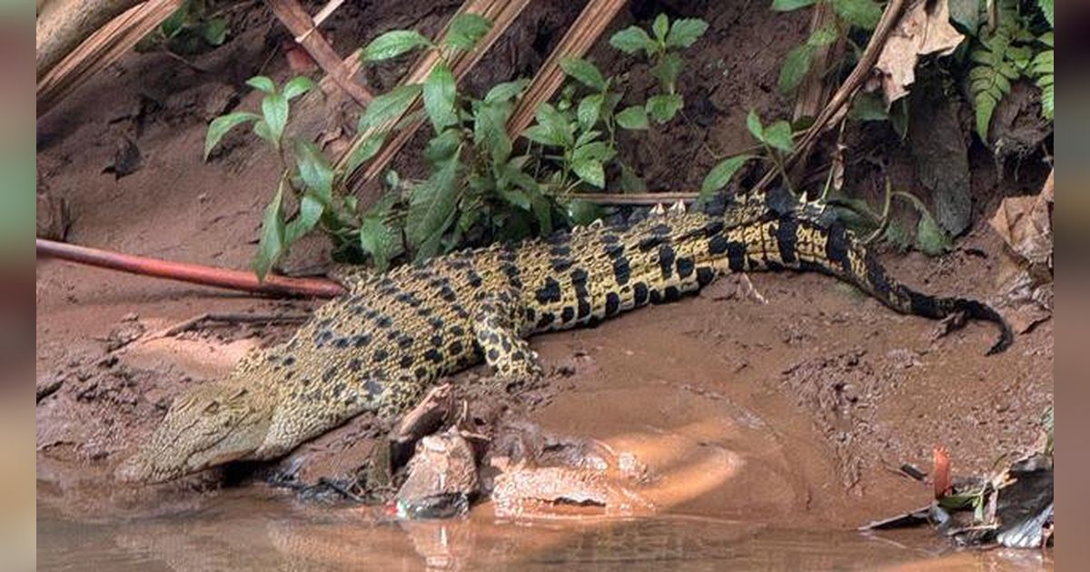 Seekor buaya telah menghuni aliran Kali Caringin, yang terletak di sebelah SMAN 5 Depok, sejak tahun lalu.