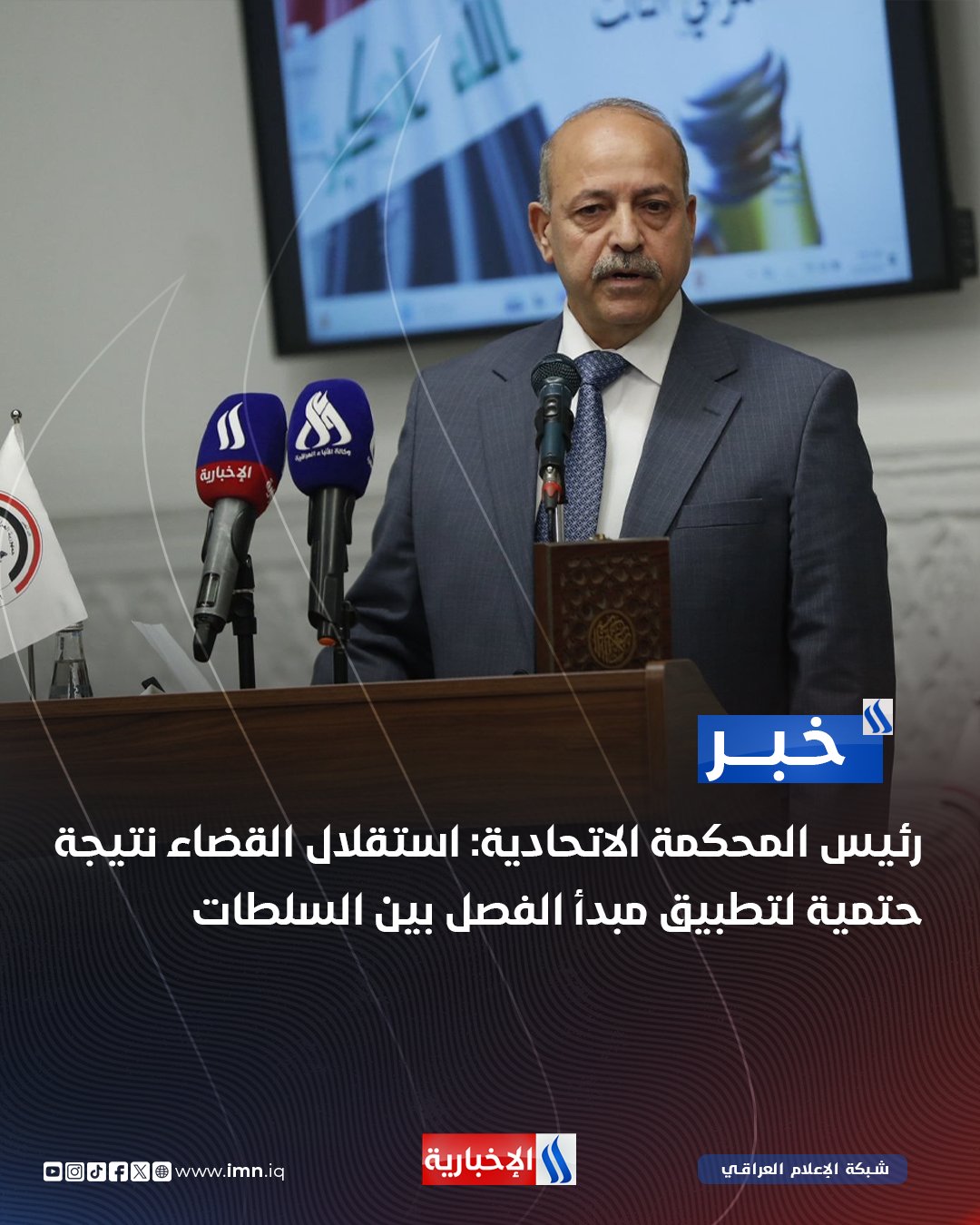 رئيس المحكمة الاتحادية العليا القاضي منذر إبراهيم في كلمة له خلال ملتقى القضاء الدستوري العراقي الثالث: استقلال #القضاء نتيجة حتمية لتطبيق مبدأ الفصل بين السلطات