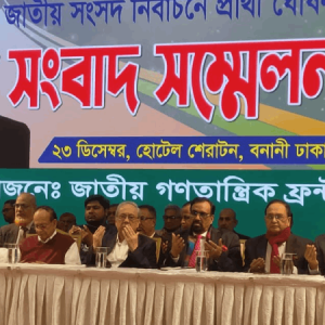 জাতীয় পার্টি ও জেপির নেতৃত্বে আত্মপ্রকাশ করা নতুন রাজনৈতিক জোট জাতীয় গণতান্ত্রিক ফ্রন্ট ১১৯ আসনে ১৩১ জন প্রার্থীর ঘোষণা করেছে। মঙ্গলবার (২৩ ডিসেম্বর) রাজধানীর বনানীর হোটেল শেরাটনের বলরুমে এক জনাকীর্ণ সাংবাদিক সম্মেলনে জাতীয় পার্টির নির্বাহী চেয়ারম্যান মুজিবুল হক চুন্নু প্রার্থীদের নাম ঘোষণা করেন। সংবাদ সম্মেলনে বক্তব্য রাখেন জাতীয় পার্টির চেয়ারম্যান ও জাতীয় গণতান্ত্রিক ফ্রন্টের... বিস্তারিত