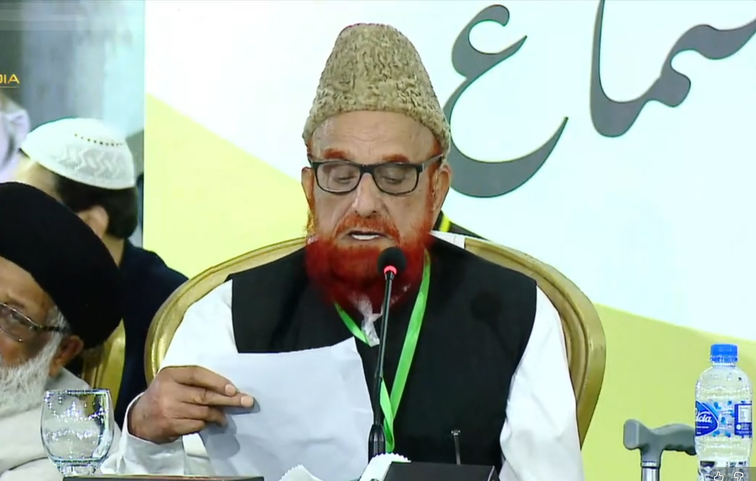 مفتی منیب الرحمٰن 22 دسمبر 2025 کو کراچی میں اجلاس کا اعلامیہ پڑھ کر سناتے ہوئے (حرا میڈیا سکرین شاٹ)