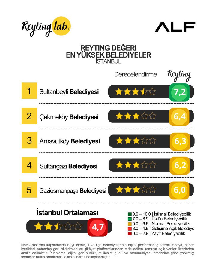 ALF Araştırma, İstanbul’un reyting değeri en yüksek belediyelerini açıkladı: