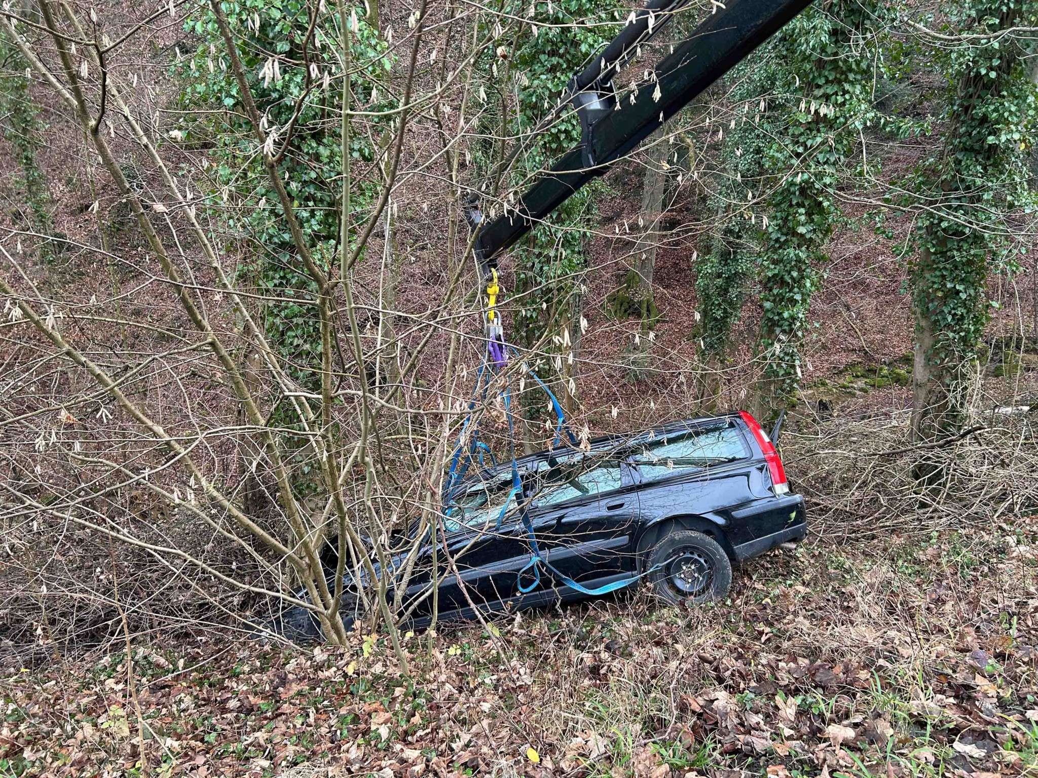 Eine 43-Jährige verlor auf der Bözbergstrasse die Kontrolle über ihr Fahrzeug. In der Folge fuhr sie mehrere Meter eine Böschung hinunter und blieb zwischen Bäumen stecken.