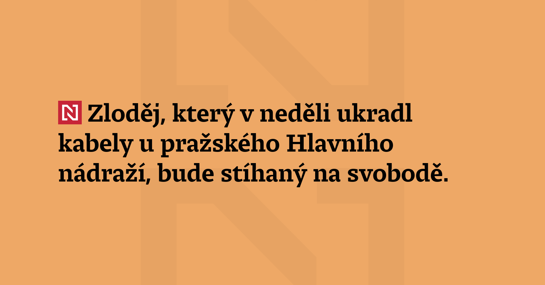 Zloděj, který v neděli ukradl kabely u pražského Hlavního nádraží, bude stíhaný na svobodě. V případě prokázání viny mu hrozí až 8 let vězení, řekl mluvčí pražské policie Jan Rybanský. (ČT24)