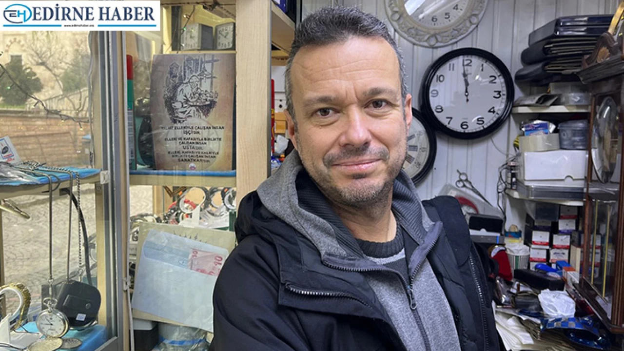 Edirne’de saatçilik mesleğini yaklaşık 30 yıldır sürdüren Esat Meriç, 1996 yılında çırak olarak başladığı mesleğine aynı dükkânda devam ediyor.