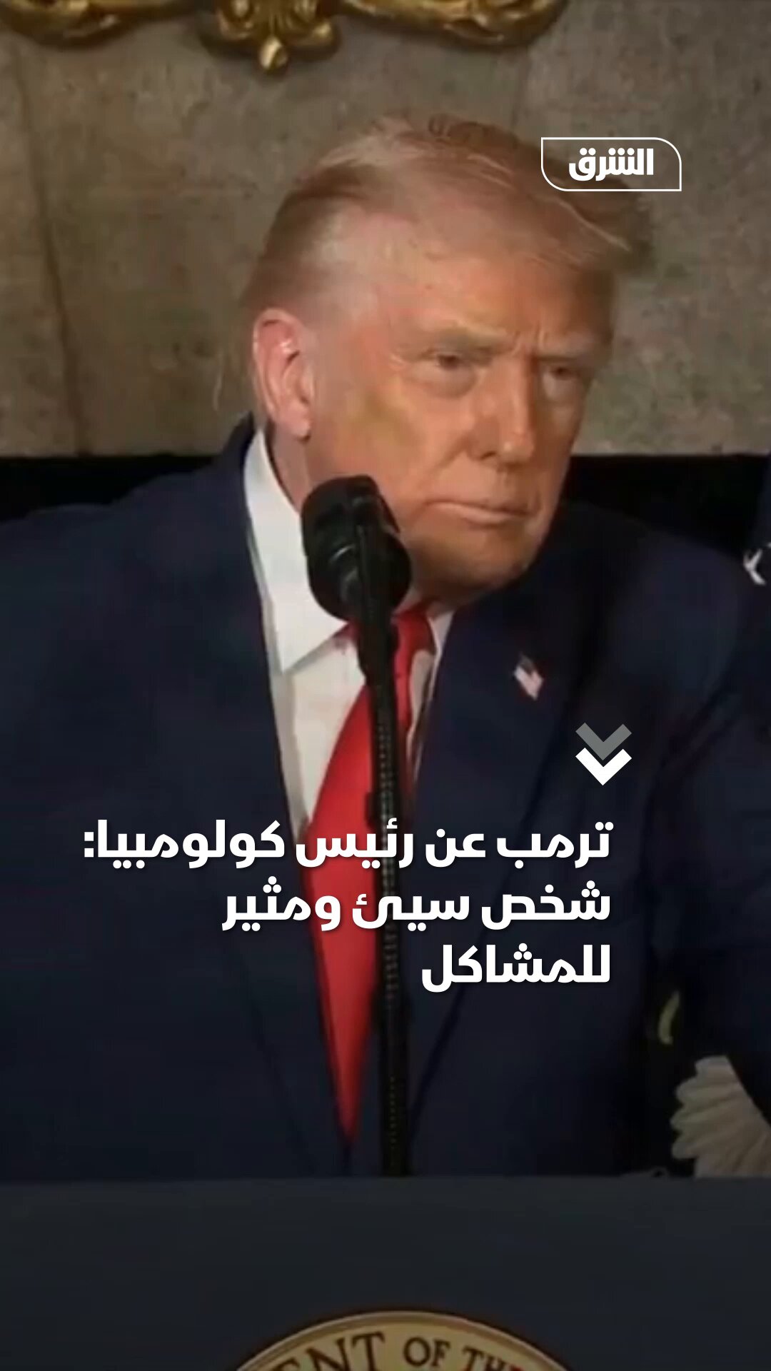 الرئيس الأميركي دونالد ترمب رداً على تصريحات لنظيره الكولومبي قال فيها إن الجنوب الغربي من الولايات المتحدة أرض مسروقة من أميركا اللاتينية: شخص سيئ مثير للمشاكل وعليه الحذر
