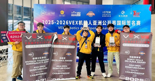 Không chỉ lần đầu giành giải thưởng cao nhất của VEX Robotics châu Á mở rộng, đội 62024P - Panda Robotics còn mở ra cột mốc quan trọng khi đưa học sinh Việt Nam thẳng tiến sân chơi Robotics lớn bậc nhất thế giới tại Mỹ diễn ra vào tháng 5.2026.