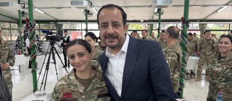 Όσο η πατρίδα μας είναι υπό κατοχή, η ουσιαστική ενίσχυση της αποτρεπτικής ισχύος είναι υποχρέωση μας, δήλωσε ο Πρόεδρος της Δημοκρατίας Νίκος Χριστοδουλίδης, ο οποίος επισκέφθηκε την Τρίτη το ΚΕΝ Λάρνακας με την ευκαιρία των εορτών των Χριστουγέννων και του Νέου Έτους. Συνοδευόμενος από τον Υπουργό Άμυνας Βασίλη Πάλμα και τον Αρχηγό της Εθνικής Φρουράς, Αντιστράτηγο Εμμανουήλ Θεοδώρου, ο Πρόεδρος μίλησε στους αξιωματικούς και οπλίτες του ΚΕΝ Λάρνακας, ευχόμενος Καλά Χριστούγεννα και εκφράζοντας την περηφάνεια του για την Εθνική Φρουρά. "Είμαστε περήφανοι για τα στελέχη, τις γυναίκες, τους άνδρες, τους αξιωματικούς, τους υπαξιωματικούς, τους κληρωτούς. Είμαστε περήφανοι και επενδύουμε σε εσάς καθημερινά, ώστε να ενισχύεται ουσιαστικά η αποτρεπτική ισχύς της Κυπριακής Δημοκρατίας", είπε. Σημείωσε πως η επένδυση στην Εθνική Φρουρά ξεκινά μέσα από την επένδυση στο ανθρώπινο δυναμικό της Εθνικής Φρουράς, στους όρους εργασίας, στα ωφελήματα, σε όλα αυτά που δικαιούστε και είναι από την πρώτη ημέρα ανάληψης της διακυβέρνησης του τόπου που λαμβάνουμε αποφάσεις προς ενίσχυση όλων αυτών των θεμάτων. Από εκεί και πέρα, ανέφερε ο Πρόεδρος Χριστοδουλίδης, "όσο η πατρίδα μας είναι υπό κατοχή, η ουσιαστική ενίσχυση της αποτρεπτικής ισχύος είναι υποχρέωση μας. Μια υποχρέωση την οποία εκπληρώνουμε καθημερινά. Πέραν, όμως, από την κατοχή, υπάρχει η διάσταση του γεγονότος ότι η χώρα μας είναι κράτος μέλος της Ευρωπαϊκής Ένωσης. Και με αφορμή και την ανάληψη της Προεδρίας σε πολύ λίγες ημέρες, θέλω να σας πω ότι τα θέματα άμυνας και ασφάλειας είναι ανάμεσα στις προτεραιότητες της Κυπριακής Προεδρίας". Είπε πως "ο τρίτος λόγος που μας οδηγεί στη συνεχή αναβάθμιση της αποτρεπτικής ισχύος της Εθνικής Φρουράς είναι η περιοχή μας. Βρισκόμαστε σε μια περιοχή ιδιαίτερης γεωστρατηγικής σημασίας, η οποία μαστίζεται από πολλές προκλήσεις και η χώρα μας είναι υποχρεωμένη, πάντοτε ως μέρος των λύσεων και ποτέ μέρος των προβλημάτων, όπως έχουμε αποδείξει στην πράξη, να ενισχύουμε την Εθνική Φρουρά". Ανέφερε πως ερχόμενος από το Ισραήλ χθες βράδυ, όπου συμμετείχε στη 10η Τριμερή Διάσκεψη ανάμεσα στην Κύπρο, την Ελλάδα και το Ισραήλ, αλλά έχοντας και διμερείς συναντήσεις με τον Πρωθυπουργό και τον Πρόεδρο της χώρας και θεωρώντας ότι τα θέματα άμυνας και ασφάλειας ήταν πολύ ψηλά στις συζητήσεις, πιο συγκεκριμένα αποφάσισαν να προχωρήσουν με περισσότερες κοινές ασκήσεις ανάμεσα στις τρεις χώρες αλλά και σε διμερές επίπεδο. "Συζητήσαμε θέματα εξοπλισμών, επαναλαμβάνω, η ενίσχυση της αποτρεπτικής ισχύος μέσα και από την αγορά εξοπλισμών είναι βασική μας προτεραιότητα. Και μέσα σε αυτό το πλαίσιο γίνεται και η προσπάθεια μας για αξιοποίηση του σχεδόν 1,2 δις ευρώ που μας έχει δοθεί μέσα από το χρηματοδοτικό εργαλείο της Ευρωπαϊκής Ένωσης, SAFE". Σημείωσε πως "το τρίτο που συμφωνήσαμε χθες είναι η δημιουργία συνεργειών ανάμεσα σε εταιρείες, ισραηλινές εταιρείες για την αμυντική βιομηχανία, αλλά και της πολύ υποσχόμενης κυπριακής αμυντικής βιομηχανίας, έτσι ώστε μέσα από συνέργειες να πετύχουμε και κοινές παραγωγές". Ο Πρόεδρος ανέφερε πως "δεν επισκέπτομαι τα στρατόπεδα μόνον όταν υπάρχουν γιορτές, Χριστούγεννα και Πάσχα, πολύ περισσότερο ο Υπουργός Άμυνας και ο Αρχηγός της Εθνικής Φρουράς. Επισκέπτομαι τα στρατόπεδα μας με κάθε ευκαιρία και όλες τις περιοχές της