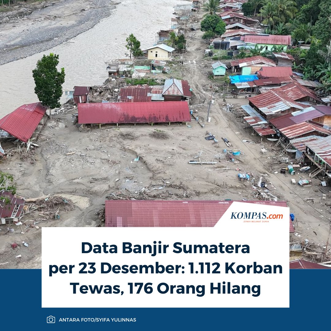 "Hari ini menjadi 1.112 jiwa dari tiga provinsi, yang artinya bertambah enam jiwa dari hari kemarin," kata Abdul Muhari dalam konferensi pers update bencana Sumatera secara virtual, Selasa (24/12/2025).