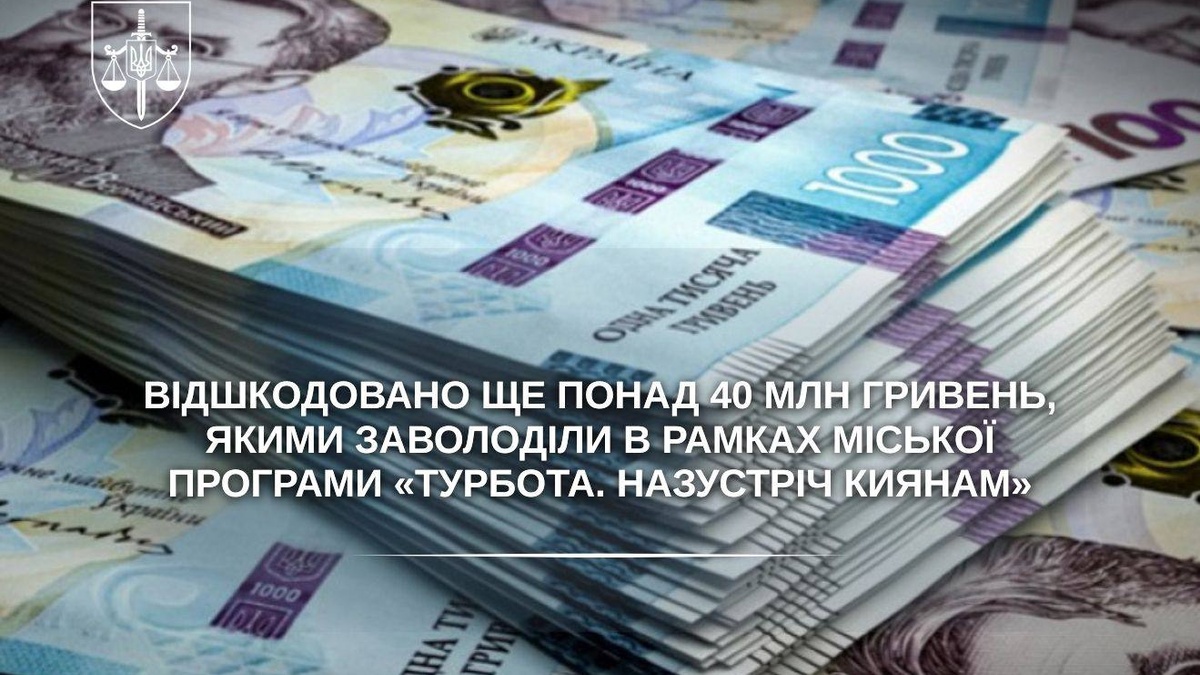 До бюджету Києва повернули понад 40 млн грн, якими заволоділи посадовці Київської міської державної адміністрації (КМДА) спільно з підприємцями під час реалізації міської соціальної програми "Турбота. Назустріч киянам", повідомляє Офіс генерального прокурора.