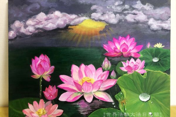 丙烯画:浊世净莲(明慧网)