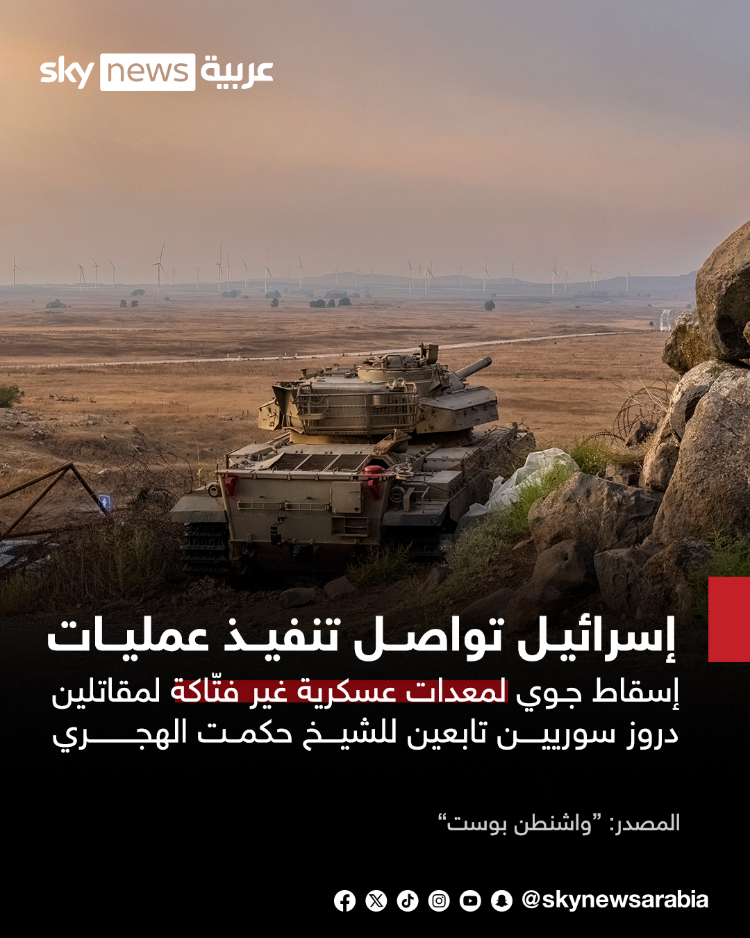 "واشنطن بوست": إسرائيل تواصل تنفيذ عمليات إسقاط جوي لمعدات عسكرية غير فتّاكة لمقاتلين دروز سوريين تابعين للشيخ حكمت الهجري