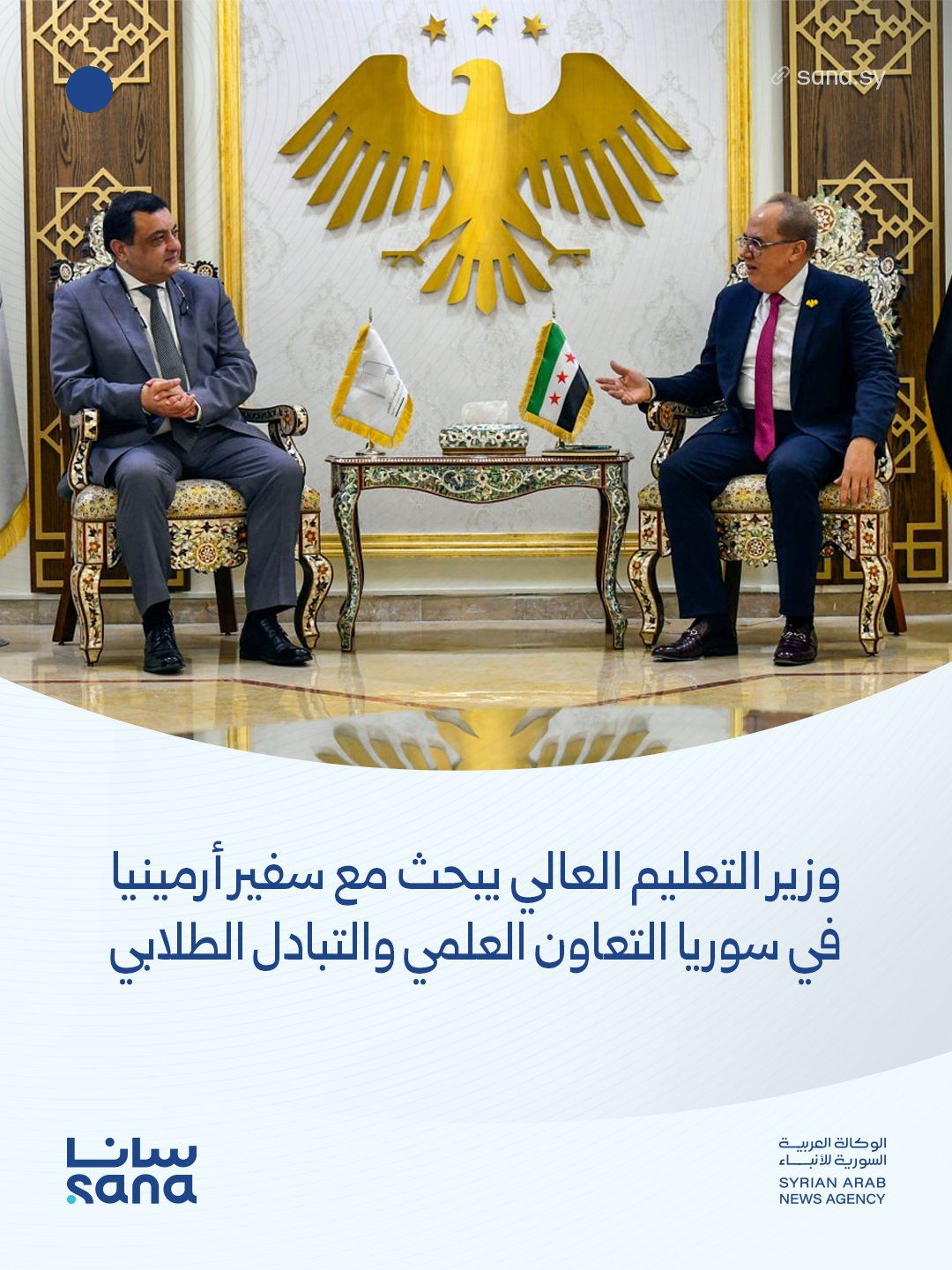 وزير التعليم العالي والبحث العلمي السوري مروان الحلبي يبحث مع سفير أرمينيا لدى سوريا روبين خارازيان، آفاق التعاون العلمي والتبادل الطلابي، والتعاون المشترك في التعليم الطبي والمشافي الجامعية.