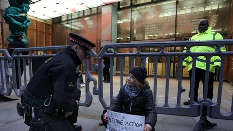 Londonas centrā protestā arestēta klimata aktīviste Grēta Tūnberga, kura atbalstījusi Palestīnas rīcības badasteikotājus, vēsta "Sky News".