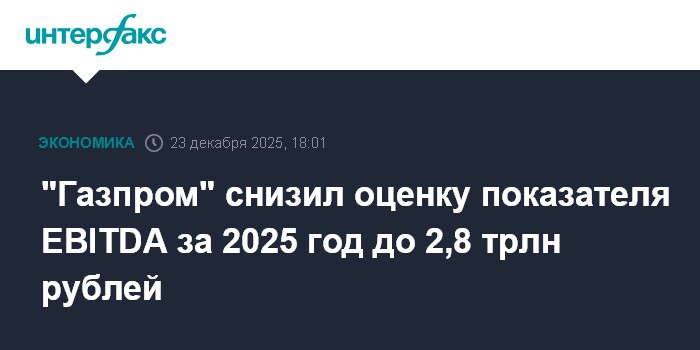 "Газпром" дал новую оценку показателя EBITDA по итогам 2025 года - 2,8 трлн рублей.