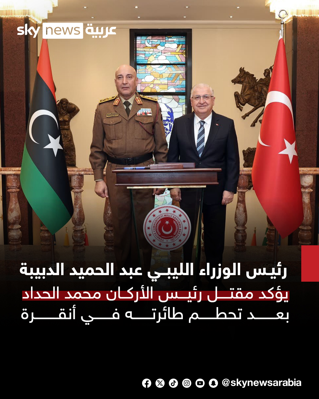 الدبيبة يؤكد مقتل رئيس الأركان محمد الحداد بعد تحطم طائرته في أنقرة #سوشال_سكاي