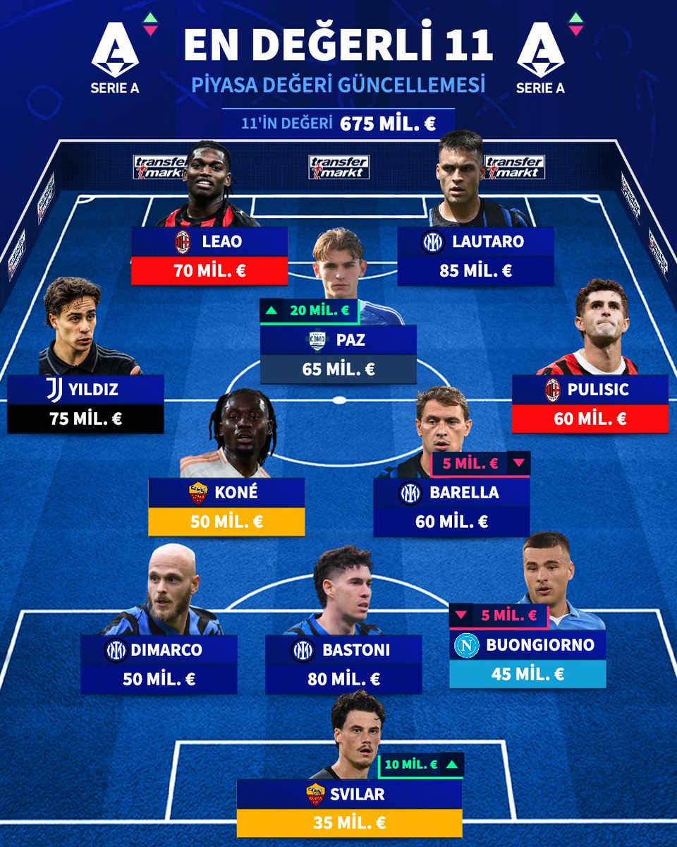 Piyasa değeri güncellemesi sonrası Serie A'nın en değerli 11'i ve en değerli oyuncuları! ➡️