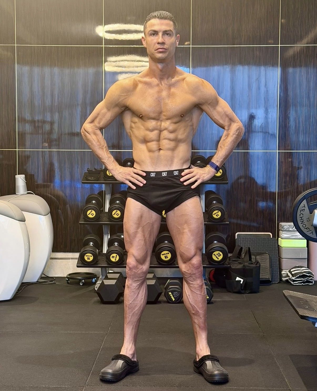 세계적인 축구선수 크리스티아누 호날두(40·알 나스르)가 군살 없는 탄탄한 몸매를 공개하며, 그의 철저한 자기 관리 비결에도 관심이 쏠리고 있다. 호날두는 19일(현지시각) 인스타그램에 자신의 몸매를 담은 사진을 게재했다. 자신이 출시한 속옷 브랜드 ‘CR7’의 제품만 착용한 채 포즈를 취한 호날두는 불혹의 나이에도 선명한 근육을 자랑하며 꾸준한 자기 관리를 입증했다.혹독한 자기 관리로 잘 알려진 호날두는 식단부터 철저하다. 영국 매체 데일리메일에 따르면, 그는 하루 식사를 6번으로 나눠 단백질 위주로 섭취한다. 생선과 닭고기 등 고단백 식품은 물론, 아보카도와 샐러드, 과일도 식단에 포함한다. 포르투갈 대표팀 동료들은 “호날두가 즐겨 먹는 음식은 스크램블 에그와 감자튀김, 소금에 절인 대구 요리”라고 전했다.훈련량도 남다르다. 개인 훈련만 하루 약 4시간에 달하며, 25~30분간의 유산소 운동과 고강도 스프린트, 근력 강화를 위한 웨이트 트레이닝, 필라테스, 규칙적인 수영