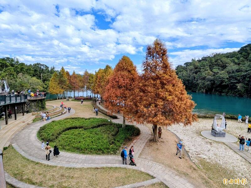日月潭冬季限定!湖畔落羽松轉紅 變身童話仙境