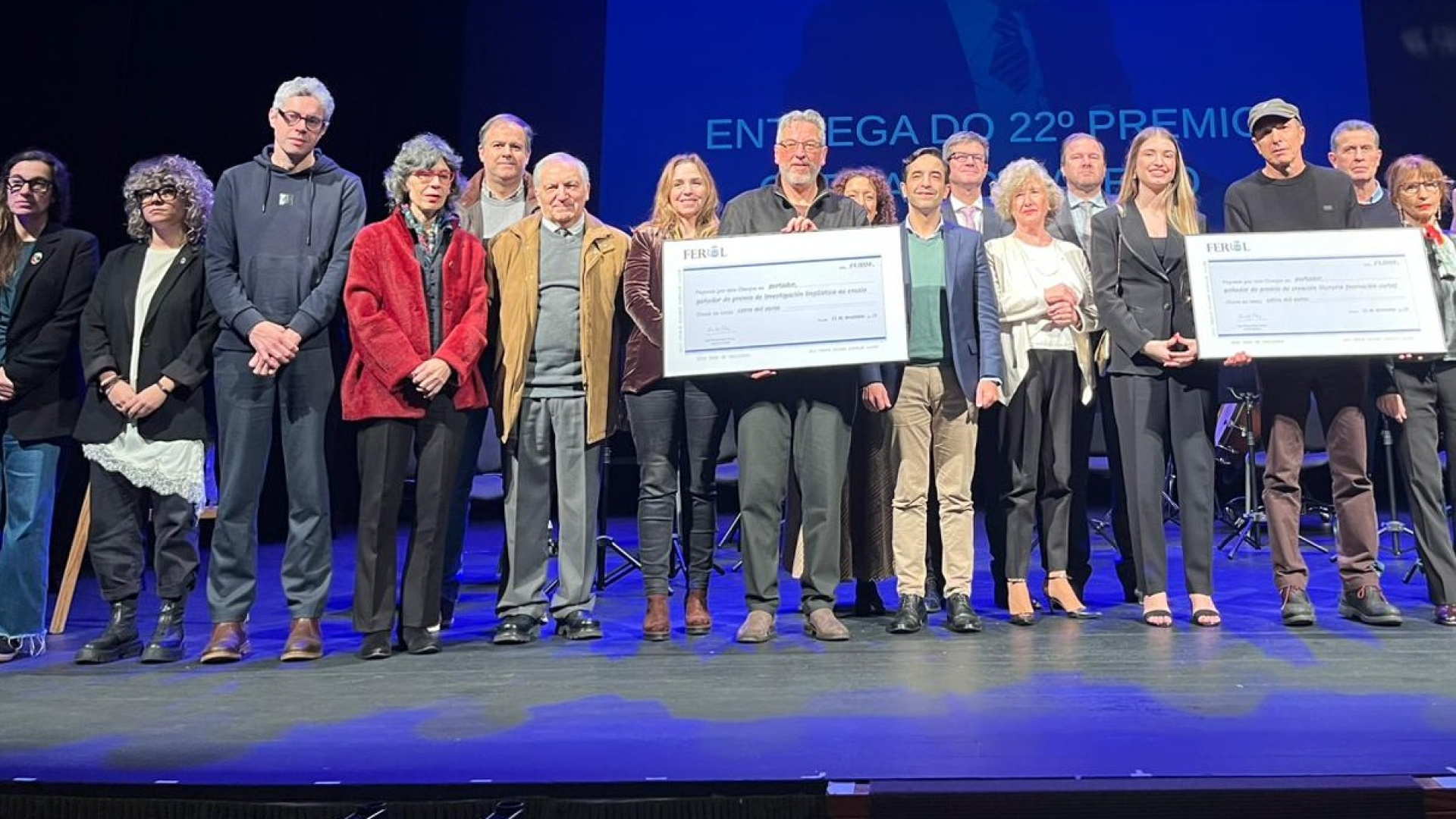 El Concello de Ferrol ha celebrado este pasado martes la entrega del XXII Premio Carvalho Calero en un acto solemne presidido por el alcalde, José Manuel Rey Varela, que tuvo lugar en el emblemático teatro Jofre. En esta edición, los galardonados han sido Francesco Martín Traficante Pérez en la categoría de Investigación lingüística o ensayo por su obra "O galego lingua nacional… ou lingua autonómica?", y Lourenço Álvarez Ruiz en la modalidad de Creación literaria por "O portão verde". El regidor ha felicitado a ambos ganadores y ha destacado la alta participación, con un total de 62 trabajos presentados. Rey Varela ha puesto en valor la recuperación de este certamen tras ocho años sin convocatoria, asegurando que el premio “vuelve a ocupar el lugar que merece en el panorama cultural ferrolano y gallego, y que no es otro que el de ser un espacio de reconocimiento, reflexión y compromiso con nuestra literatura”. Con esta iniciativa, ha añadido, se “reafirma la voluntad de Ferrol de ser una ciudad activa culturalmente”. El acto ha servido también como homenaje a la figura que da nombre al premio, el ilustre ferrolano Ricardo Carvalho Calero, escritor, profesor universitario e Hijo Predilecto de la ciudad. En el tributo han participado su hija, María Victoria Carvalho Calero; el lingüista Xosé Martinho Montero Santalha; la exalumna y amiga del escritor, Delia Vázquez Vázquez; y el concejal de Cultura, José Antonio Ponte Far.
