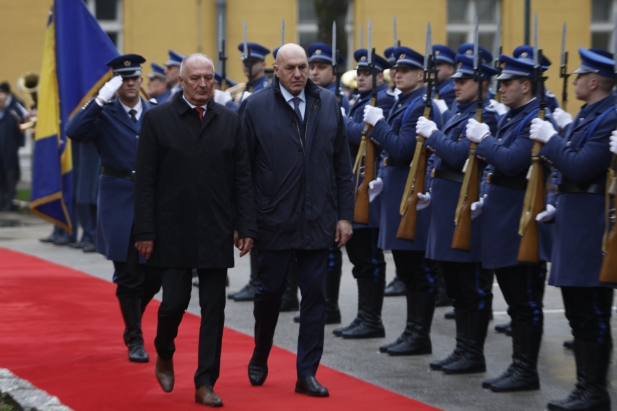Svečani doček je upriličen uz Počasnu jedinicu OS BiH i intoniranje himni obje države.