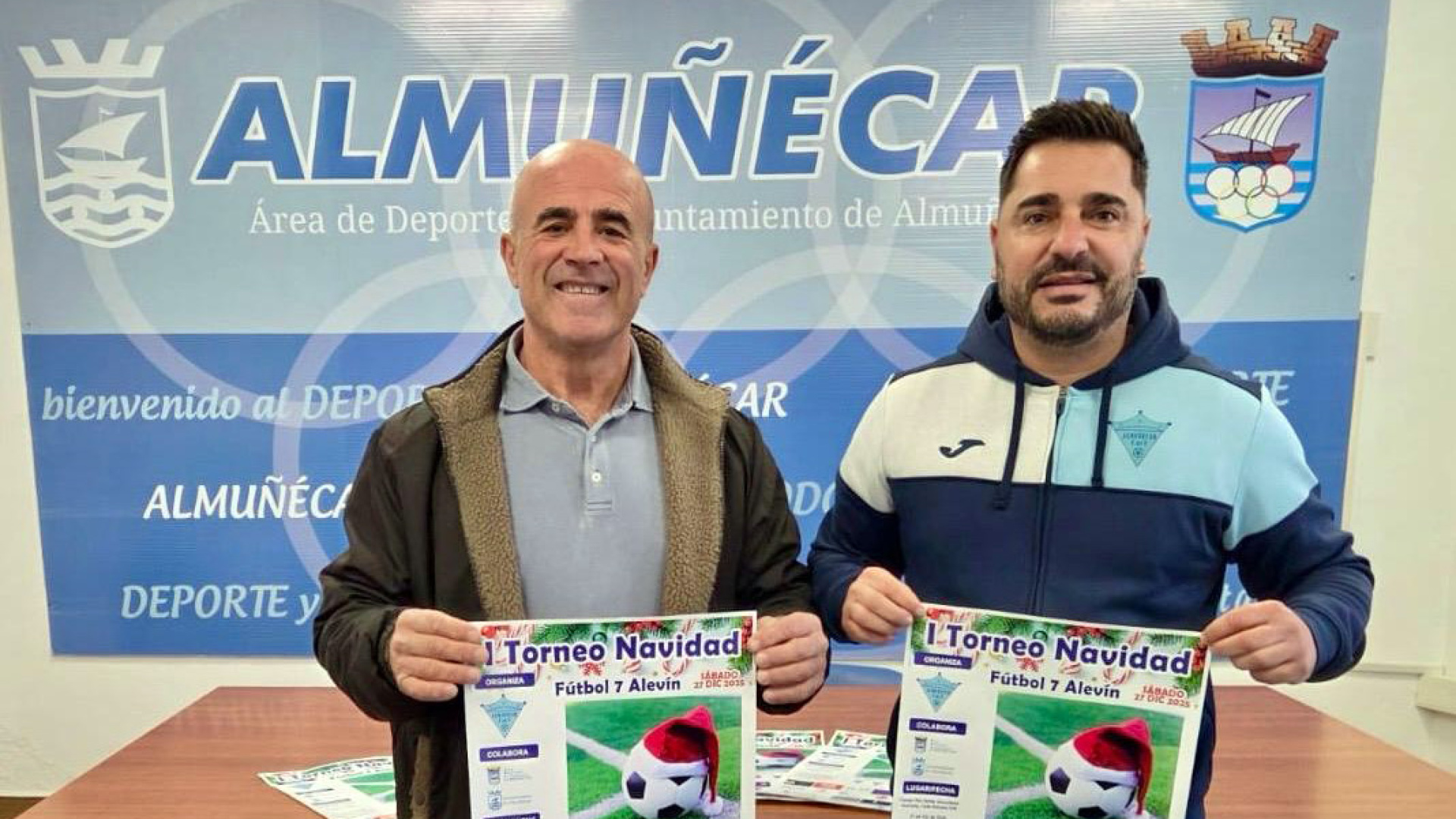 Luis Aragón, concejal de Deportes del Ayuntamiento de Almuñécar, junto a Mario J. García Almendros, presidente del Almuñécar CF, presentaron el I Torneo ‘Navidad Almuñécar’ de fútbol 7 alevín. Este evento reunirá alrededor de 80 jugadores, será el sábado 27 de diciembre en el campo municipal ‘Río Verde’ y en horario ininterrumpido de 9 a 19 horas. El torneo contará con la participación de ocho equipos de la Costa Tropical y la provincia, entre ellos, el Almuñécar CF A y B, CF Motril A y B, CF Alhendín Balompié, CD La Herradura 2005 y CD Almuñécar 2021. La competición se desarrollará con una fase de grupos A y B, tras la cual los equipos accederán a la Liga Oro y la Liga Plata, disputándose posteriormente dos semifinales y dos finales, que pondrán el broche final a la jornada. En el acto de presentación Luis Aragón subrayó que “este tipo de torneos fomentan la práctica del deporte también durante las vacaciones de Navidad”, a la vez que añadió que “desde el Área de Deportes apoyamos todas aquellas iniciativas que fomentan la participación y el deporte en equipo”. Por su parte, el directivo Mario García señaló que “el objetivo de este torneo es seguir fomentando el deporte en estas fechas en las que las ligas están de parón navideño y podamos disfrutar de un buen ambiente deportivo durante toda la jornada”. Hay que recordar que habrá servicio de barra con bebidas y comida, cuyos beneficios irán destinados íntegramente al Almuñécar CF.