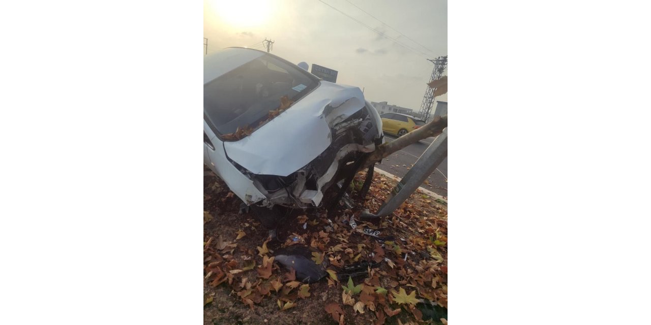 Diyarbakır'da şerit değiştiren araca çarpmamak için manevra yapan araç, refüjdeki ağaç ve aydınlatma direğine çarptı.