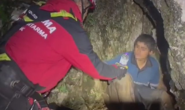 Dağlık alanda mahsur kalan genci jandarma kurtardı