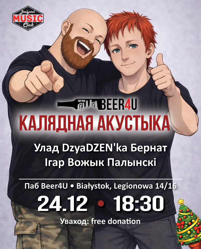 Калядны акустычны канцэрт адбудзецца 24 снежня ў Beer4U (ul. Legionowa 14/16). Пачатак 18.30. The post Улад Бернат і Ігар Палынскі ў Беластоку appeared first on Рацыя .