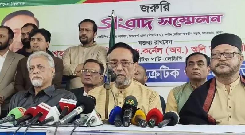 বিএনপি সঙ্গ ছেড়ে এককভাবে ভোট করার ঘোষণা দিয়েছেন লিবারেল ডেমোক্রেটিক পার্টি-এলডিপির প্রেসিডেন্ট ড. কর্নেল (অব.) অলি আহমদ বীর বিক্রম। বুধবার (২৪ ডিসেম্বর) জরুরি সংবাদ সম্মেলন করে এ ঘোষণা দেন তিনি। দুপুর ১২টায় রাজধানীর মগবাজারের গুলফেশা টাওয়ারে এলডিপির পার্টি অফিসে এই সম্মেলন অনুষ্ঠিত হয়। সংবাদ সম্মেলনে এলডিপির প্রেসিডিয়াম সদস্য সাবেক এমপি নুরুল আলম তালুকদার, লে. জেনারেল […] The post বিএনপির সঙ্গ ছেড়ে এককভাবে ভোট করার ঘোষণা দিলেন কর্নেল অলি appeared first on চ্যানেল আই অনলাইন .