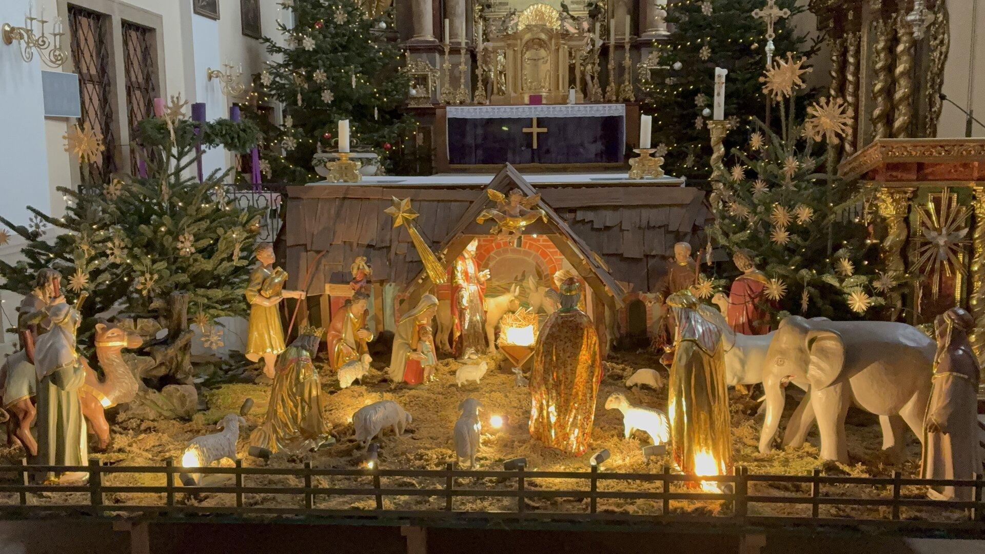 Wenn Kinderaugen vor Begeisterung leuchten, dann hat sich der Aufwand gelohnt. Was für jedes Familien-Weihnachtsfest gilt, das gilt auch für viele Geistliche, die ihre Gotteshäuser zur Weihnachtszeit mit Hingabe schmücken. Pater Thomas Lackner geht mit bestem Beispiel voran. Der technikaffine Franziskaner-Pater hat die Basilika Frauenkirchen heuer mit einem ganz besonders prächtigen Festtagsschmuck ausgestattet. Das Highlight erstrahlt seit Dienstag vor dem Altar in vollem Glanz: die sprechende Weihnachtskrippe . Dem Pfarrer ist die Erleichterung anzumerken, als bei der Demonstration für den KURIER schon (fast) alles klappt. Einige Feinjustierungen braucht es noch: „Der Stern müsste an dieser Stelle direkt angeleuchtet werden“, stellt Pater Thomas fest – und geht in die Hocke, um an einer der vielen Lampen zu drehen. Ein kleines Weihnachtswunder Die Krippe ist ein kleines technisches Weihnachtswunder. Nach dem Einwurf einer Zwei-Euro-Münze (das Geld wird für die Kirchensanierung verwendet), nimmt das Schauspiel seinen Lauf. Sechs Minuten lang erzählen Kinderstimmen von der Geburt Jesu Christi in Bethlehem. Auf den Punkt genau werden immer jene Figuren beleuchtet, die in der Handlung gerade im Mittelpunkt stehen. „Ich hätte nicht damit gerechnet, dass das so aufwendig ist. Die Szenenbeleuchtung mit dem Text in Einklang zu bringen, war eine große Herausforderung“, erzählt Pater Thomas. Zwei Event-Techniker aus dem Bezirk sind dem Geistlichen beim Programmieren zur Hand gegangen. Die Sprechrollen haben Frauenkirchner Volksschulkinder übernommen. Paul Haider Pater Thomas mit der Figur, die seinen Vorgänger in der Basilika , Pater Michael, darstellt. Ursprünglich sollte die Krippe sogar noch lebendiger erscheinen, verrät Pater Thomas: „Wir haben schon erste Versuche mit Pneumatik gemacht, dann wären die Figuren beweglich gewesen. Das Problem war nur, dass das sehr laut ist. Das hätte die Atmosphäre gestört.“ Erste Weihnachtskrippe der Geschichte Die Krippe und die Figuren schmücken schon seit den 1990er-Jahren zur Weihnachtszeit die Basilika. Thomas Lackners Vor-Vorgänger, Pater Michael, hat sie damals angeschafft. Das Krippenspiel an sich ist freilich noch viel älter – dazu haben die Franziskaner übrigens eine besondere Beziehung. Denn der Ordensgründer, Franz von Assisi , habe im Jahr 1223 das allererste Krippenspiel in Auftrag gegeben, erzählt Pater Thomas: „Der heilige Franziskus hat gespürt, dass den Menschen Weihnachten abhandengekommen ist. Er hatte die Idee, die Weihnachtsgeschichte den Leuten leibhaft näher zu bringen.“ Paul Haider Die High-Tech-Krippe kann bis 30. Jänner täglich von 8 bis 20 Uhr bestaunt werden. So soll in Greccio , 90 Kilometer nördlich von Rom, das erste Krippenspiel der Geschichte inszeniert worden sein. Zum 800-jährigen Jubiläum 2023 hat Pater Thomas zum ersten Mal die sprechende Weihnachtskrippe in der Basilika aufgestellt. Seither wird die Inszenierung jedes Jahr verfeinert und erweitert. 802 Jahre später Was würde Franz von Assisi wohl sagen, wenn er die sprechende Weihnachtskrippe in Frauenkirchen heute sehen könnte? Wahrscheinlich würde er genauso staunen , wie die vielen Kinder vor dem Altar der Basilika. Pater Thomas ist zufrieden: „Das Ganze war wirklich ein Riesenaufwand, wir haben viele Stunden damit verbracht. Aber ich denke mir, Franziskus hat damals auch lange hin und her überlegt, wie man die Weihnachtsgeschichte wieder lebendig machen kann.“