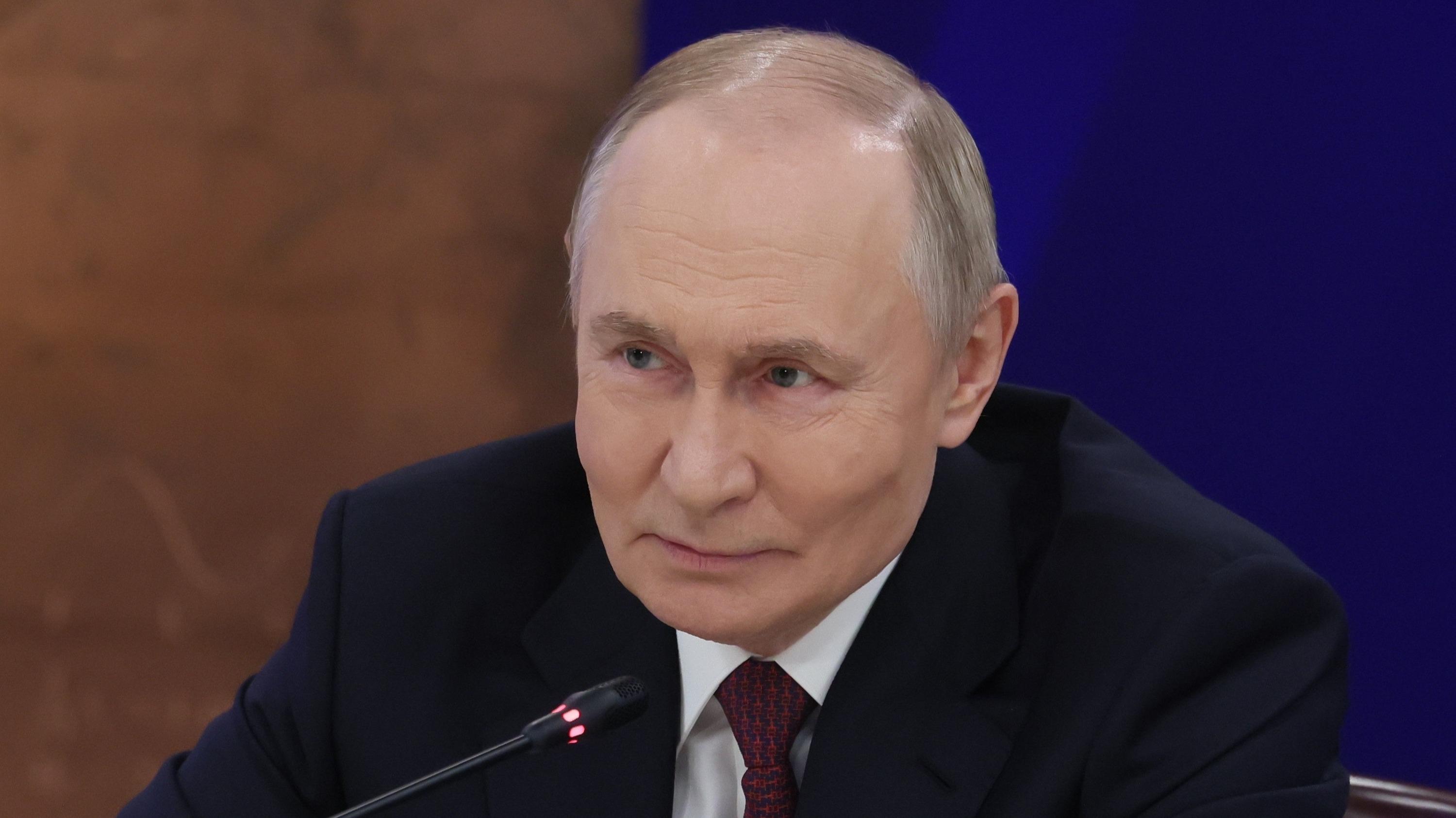 "Russian President Vladimir Putin holds a meeting with business representatives in Moscow on Wednesday, December 24."
