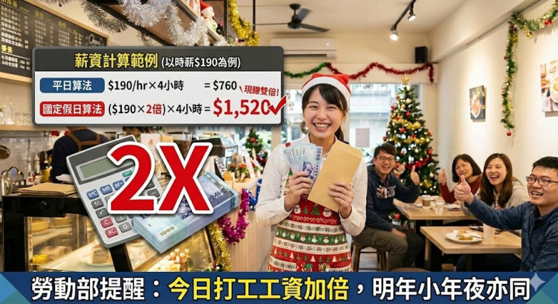 耶誕節打工別虧大!12/25恢復國定假日、學生族打工應領雙倍薪