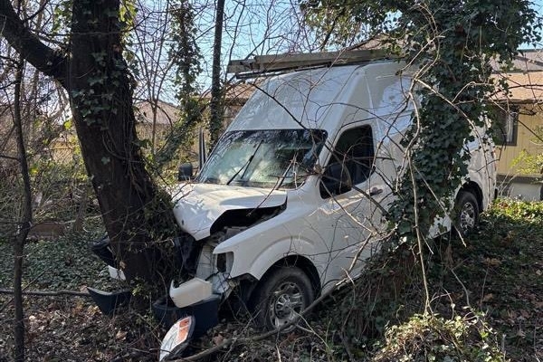 2025年12月24日,马里兰州(Maryland)格伦伯尼(Glen Burnie)发生一起非法移民拒捕,并试图开车撞击移民与海关执法局(ICE)特工事件。ICE特工自卫开枪,两人受伤住院。面包车随后失控,撞在两栋建筑物之间的树上。(Department of Homeland Security)