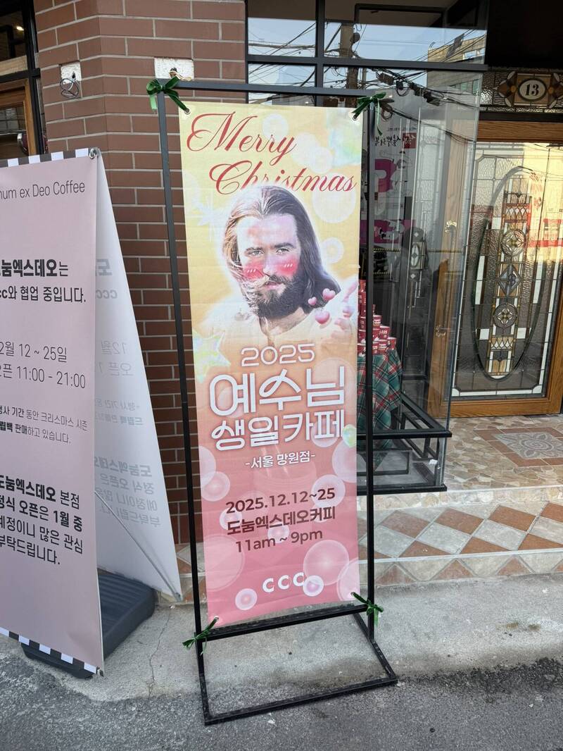 聖誕節將至,南韓街頭再度掀起話題性十足的快閃應援活動,不過這次主角不是K-POP偶像,而是耶穌。近年盛行的「偶像生日咖啡廳」文化,被巧妙結合宗教信仰,化身為「耶穌生日咖啡廳」,成...…