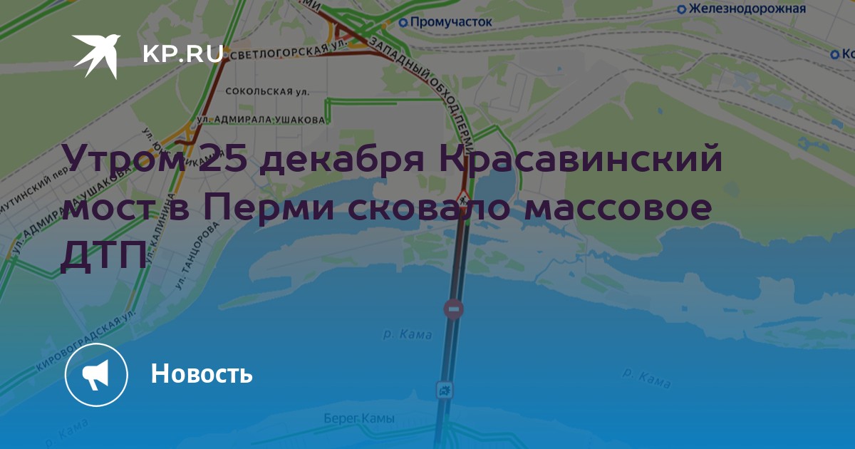 В Перми рабочий день 25 декабря начался с серии ДТП на дорогах города. Очевидцы сообщили о массовом столкновении автомобилей на Красавинском мосту. Движение парализовано по направлению в Индустриальный район.