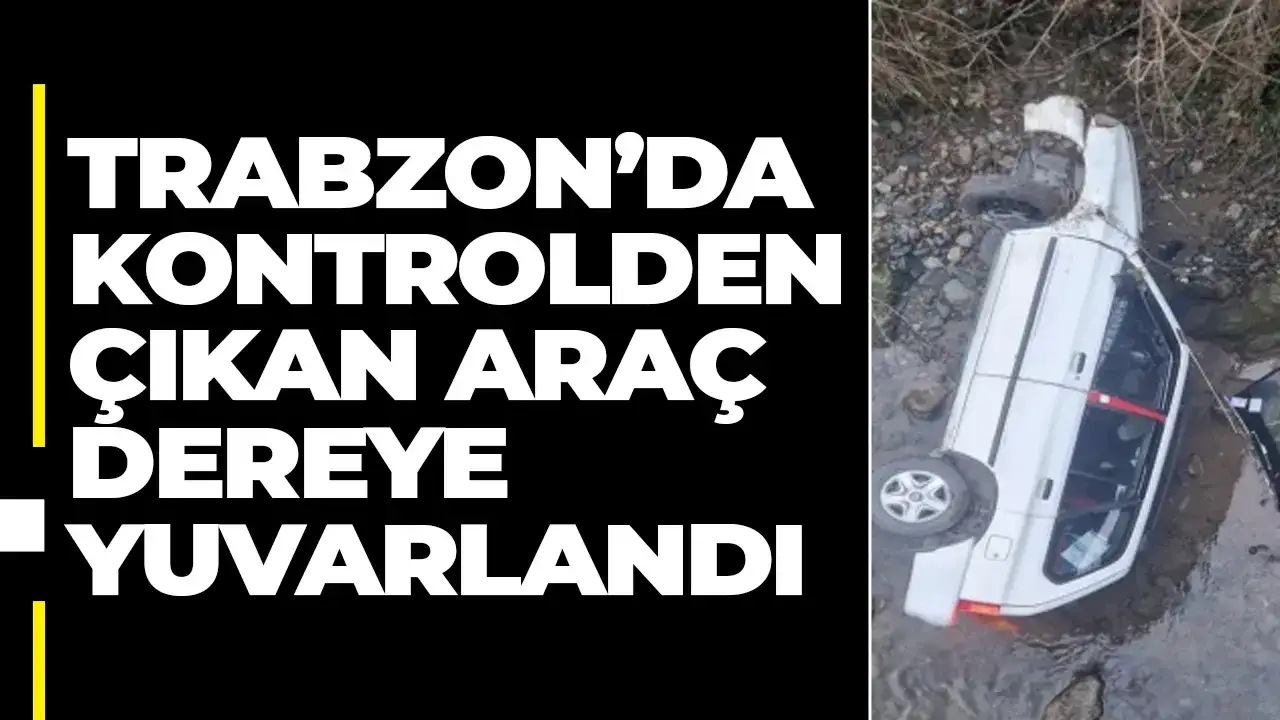 Trabzon’da kontrolden çıkan araç dereye yuvarlandı
