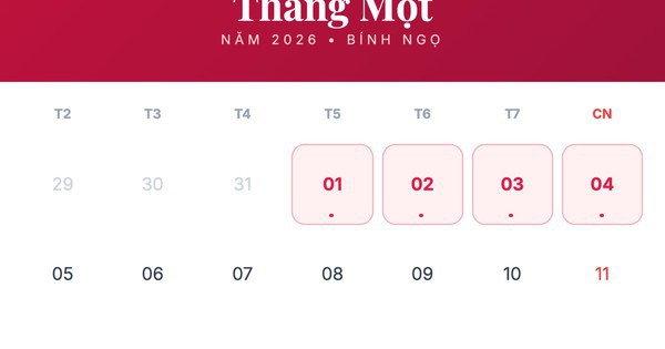 Theo thông báo của Bộ Nội vụ, dịp Tết Dương lịch năm nay được nghỉ 4 ngày liên tục, từ ngày 1-1-2026 đến hết ngày 4-1-2026.