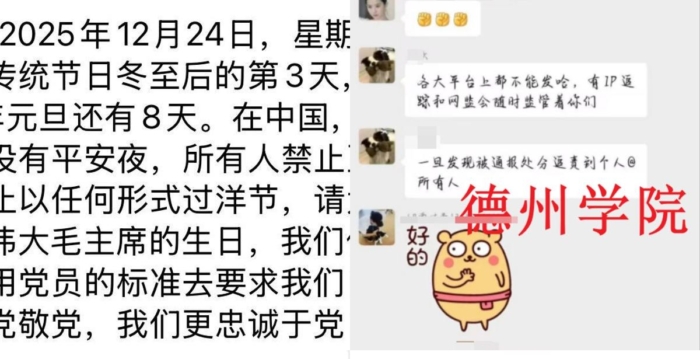 【大纪元2025年12月25日讯】(大纪元记者邢度采访报导)今年平安夜,中国多地宗教活动与公共庆祝空间继续受到限制。高校被要求不公开庆祝圣诞节,上海街头的自发活动者被警方带走,山东与四川家庭教会聚会遭国保阻挠,商场的圣诞布置也明显收缩。受访者说,今年圣诞节,宗教的相关活动被压缩至只能在官方划定范围内进行。 多地的基督徒圣诞聚会受阻 12月24日平安夜,山东、浙江、四川等地的家庭教会信徒打算聚会庆祝圣诞节,但遭到国保阻挠。山东青岛一家庭教会的黄姓牧师告诉大纪元,当局阻止他们举行聚会:“平安夜,有关部门通知我们信徒不可以集体聚会。我们家庭成员在一起聚会,还邀请了几个朋友在家吃吃喝喝。” 黄牧师还说,这里的集体聚会都被禁止了,各个商场也不准摆放圣诞树和圣诞装饰:“今年的圣诞节毫无圣诞气氛,不仅青岛这样,其它地方的弟兄姊妹告诉我,他们那里也不准聚会,到处冷冷清清。” 12月24日,山东德州学院要求学生不准发朋友圈,一经发现严肃处理,有辅导员表示,“IP跟踪和网监会随时监管着你们,一旦发现即追责到个人,这是很严肃的事情。”陕西西北大学要求今明(24日、25日)两晚不外出不返家,每晚点名。 浙江温州是中国基督徒最集中的区域,当晚一位王姓牧师告诉记者,平安夜,官方只允许信徒们在官方教会参加庆祝活动。他说:“与往年比较,今年的圣诞气氛差得很远,已经感觉不到圣诞节的气氛,前些日子被抓走的几位信徒还没有放回来。现在我们这里许多弟兄姊妹都不敢参加集体活动。” 温州一名姓李的牧师对记者说,圣诞即前,地方国保向他询问参与平安夜活的人数。他说,预计约一百多人参加。国保答复称“不要再扩大范围”。李牧师说,平安夜过去能邀请非教会人士,如今仅限会众。 多位信徒透露,浙江多所高等院校团干部工作群向成员发布通知,要求学生换下圣诞帽群聊头像,并且不得在朋友圈出现涉及有关圣诞节的内容。该校一学生说:“今年学校发了圣诞节管制指引,不准同学用圣诞标志作为头像。” 杭州一位基督徒对记者说,家庭教会仍然不能聚会。以家庭为单位还可以,但超过家庭成员人数会被劝阻。在圣诞期间聚会保持低度曝光已是多年的习惯了。 同日,上海黄浦区长乐路,一名女子在街头扮成圣诞老人,带着宠物向路人分发平安果。不久后女子被警察带走。拍摄画面显示,她在派出所做笔录,室内另有多名身穿圣诞老人服饰的人士等待问讯,地上还有一大堆圣诞节帽子、圣诞树等。 在部分商业区内的圣诞节装饰也受限。上海居民何先生说:“今年只允许在指定区域内摆放圣诞树、播圣诞音乐,年轻人还是喜欢圣诞节。但政府想搞活经济却不想宣传圣诞节。”何先生说,如今圣诞节只能在划定的范围内存在。 上海一名基督徒对记者说,今年圣诞装饰仅能出现在官方指定商场或活动场地。他说,其它场域不能摆放圣诞树。部分场所22日提前撤除节庆元素。 福建信徒约翰对记者说,近两年,除了中共官方认定的教堂外,面向大众的圣诞聚会逐步取消。沈阳一名学生说,校方曾要求学生不能戴圣诞帽,并有街道人员上门向家长劝导不要带孩子参加教会活动。 与华东情况类似,西南地区信徒也描述当地圣诞节的活动显得异常收紧。四川成都一位杨姓基督徒告诉记者,平安夜之前已经接到国保不准聚会的通知:“我们平安夜不能聚会,街道上没有圣诞节气氛,有一些大型商超还有一些圣诞装饰,但与前些年马路上有大型圣诞布置相比,现在已经没有了。家庭聚会被全面禁止。” 杨先生表示,当局要求基督徒到官方认可的三自教会聚会,一般信徒只能以家庭为单位。 今年大陆圣诞节气氛远比以往冷清 另一方面,美国驻华大使馆12月24日在社交平台发布使馆员工节日合唱片段,文字称“祝大家节日快乐、平安喜乐”。影片在中国社交平台转载,有留言感谢祝福,也有人留言说公共场景节庆元素需配合管理。 近年中国各地每逢圣诞节即会出现不同层面的限制。2021年至2024年间,河南、安徽、四川多地教会收到街道通知不得举行平安夜活动。有教会成员说,每年12月20日前后都会接获询问活动人数与方式的电话。部分城市要求提前提交名单并安排人员到场查验。 公开资料显示,中国境内民众举行宗教活动只能在注册场机构内进行,节庆不得延伸至公共空间。地方政府此前亦要求圣诞节“不外扩、不渲染、不炒作”。有网民说,圣诞节虽非中国传统节日,但为普通人留下善意与互动,如今只相关活动能在限定区域举行。 圣诞节的公共呈现已逐渐形成“官方划线、限定表达”的节日模式。 责任编辑:林琮文#