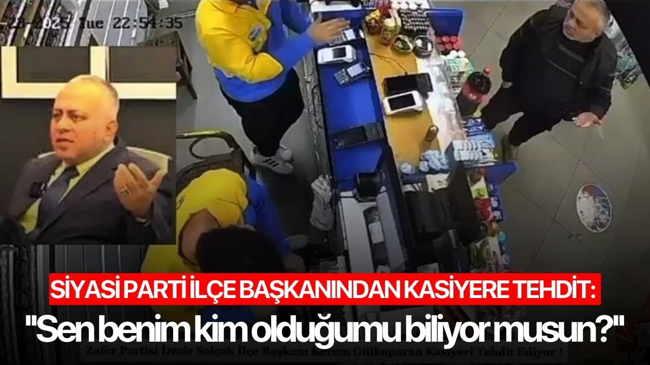 İzmir’de Zafer Partisi Selçuk İlçe Başkanı Kerem Gülkoparan’ın, ilçe girişinde bulunan bir benzin istasyonunun market bölümünde çalışan kasiyeri tehdit ettiği güvenlik kameralarına yansıdı.