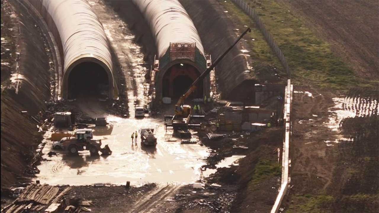 Türkiye'yi hızlı trenle Avrupa'ya bağlayacak İstanbul-Kapıkule Yüksek Standartlı Demiryolu Projesi'nin yapım çalışmaları büyük bir hızla ilerliyor. Proje kapsamında Küçükçekmece Gölü altından geçecek olan tünellerin inşaatı dron ile görüntülendi.