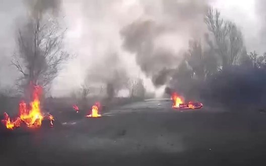 У мережі з’явилися унікальні кадри війни дронів зняті камерою українського наземного роботизованого комплексу, який рухався у напрямку бойових позицій на Костянтинівському напрямку в Донецькій області.