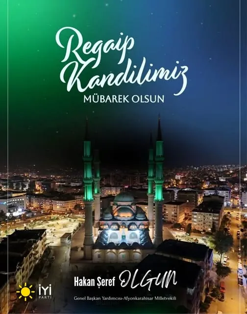 iyi parti'li olgun'dan regaip kandili mesajı: "bolluk, bereket ve huzur getirmesini temenni ediyorum"