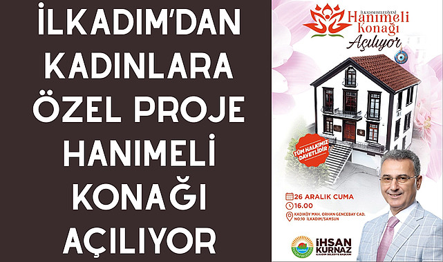 İlkadım Belediyesi’nin kadınlara yönelik sosyal projesi ‘Hanımeli Konağı’, 26 Aralık Cuma günü açılıyor.