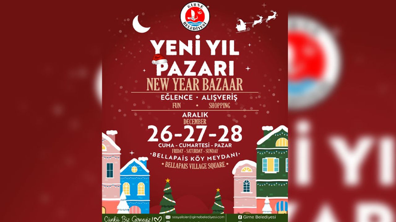 Girne Belediyesi tarafından düzenlenen Yeni Yıl Pazarı, 26–27–28 Aralık tarihlerinde Bellapais Köy Meydanı’nda ziyaretçilerini ağırlamaya hazırlanıyor.