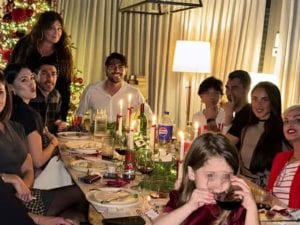 La cena di Natale a casa di Cecilia Rodriguez: segnaposti tartan e un enorme centrotavola illuminato