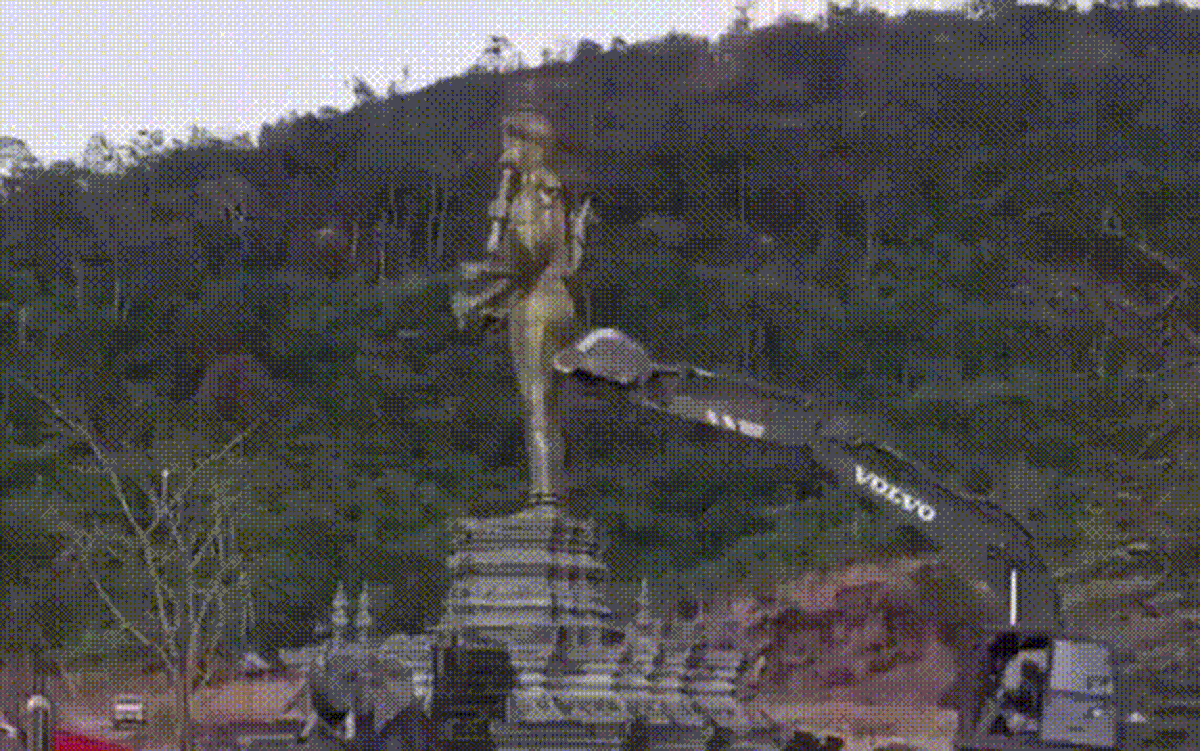 Một đoạn video lan truyền đang làm dấy lên làn sóng tranh cãi khi ghi lại cảnh lực lượng Thái Lan sử dụng máy xúc xô đổ bức tượng thần Vishnu tại khu vực đang có tranh chấp với Campuchia.