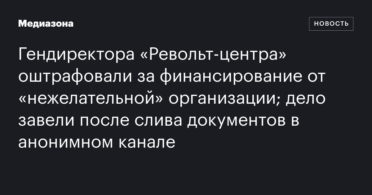Гендиректора «Револьт‑центра» оштрафовали за финансирование от «нежелательной» организации; дело завели после слива документов в анонимном канале