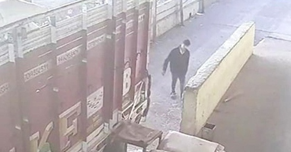 Khi nam thanh niên tiến lên để dọn dẹp vật cản, chiếc xe tải bất ngờ lùi khiến anh bị kẹp giữa tường và xe.