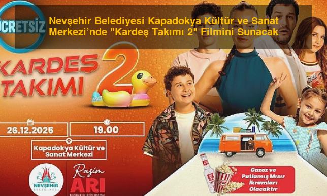Nevşehir Belediyesi, Kapadokya Kültür ve Sanat Merkezi’nde "Kardeş Takımı 2" filmini sinema severlerle buluşturuyor. Nevşehir Belediyesi Kapadokya Kültür ve Sanat Merkezi’nde “Kardeş Takımı 2” Filmini Sunacak yazısı ilk önce Ayancık Gazetesi üzerinde ortaya çıktı.